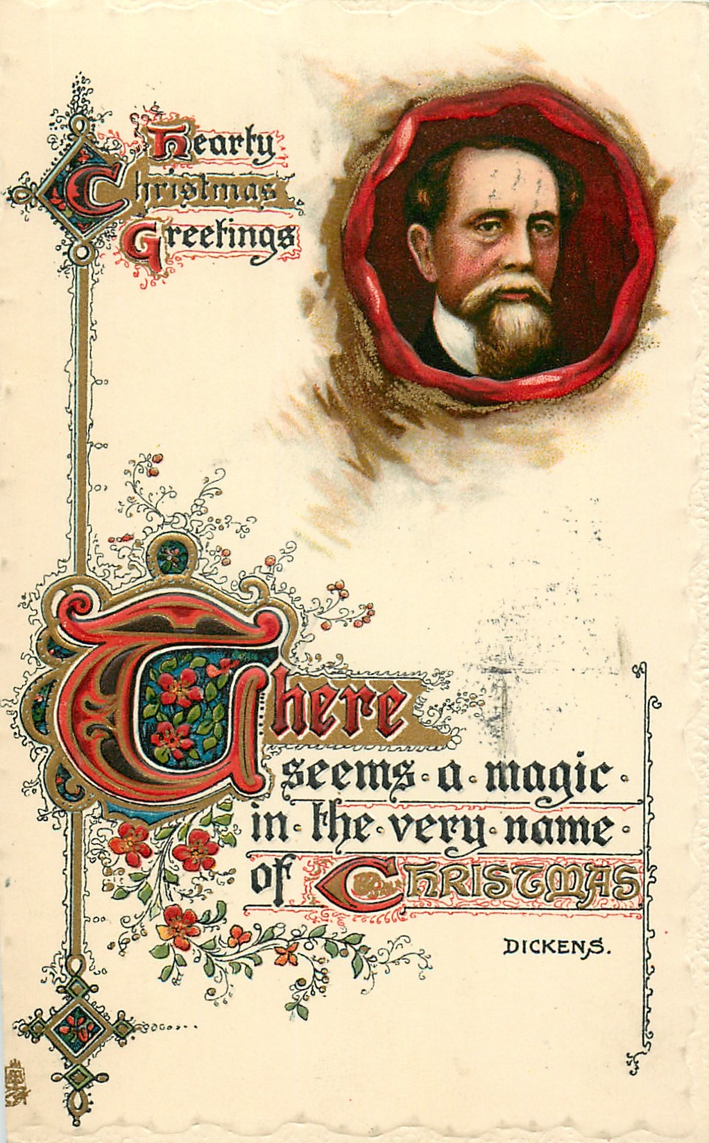 HEARTY CHRISTMAS GREETINGS Dickens inset & quote