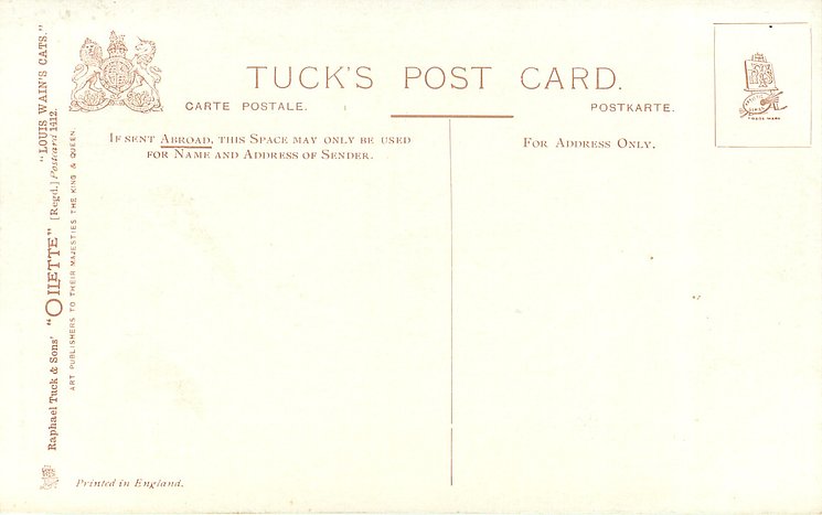 OILETTE, PRINTED IN ENGLAND, 3 backs, see Booth and Lund, listed in 1908/1909 Catalogue