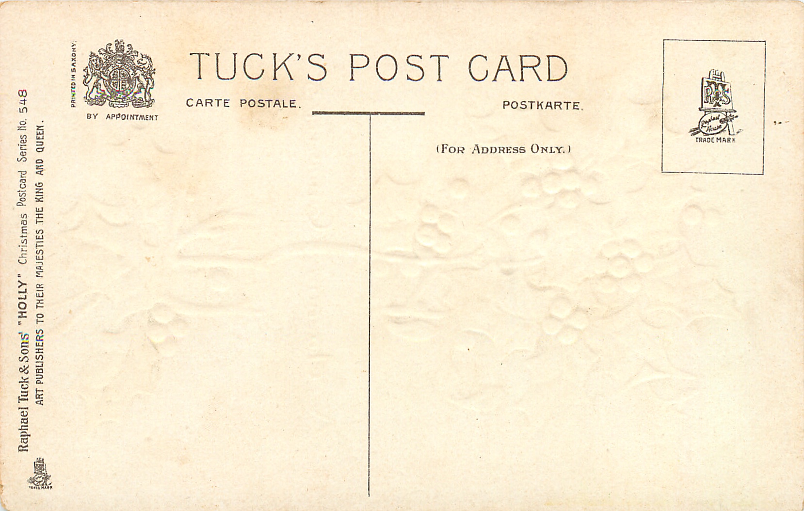 gilt embossed, CHRISTMAS, PRINTED IN SAXONY (comes covered by filigree during WW1)