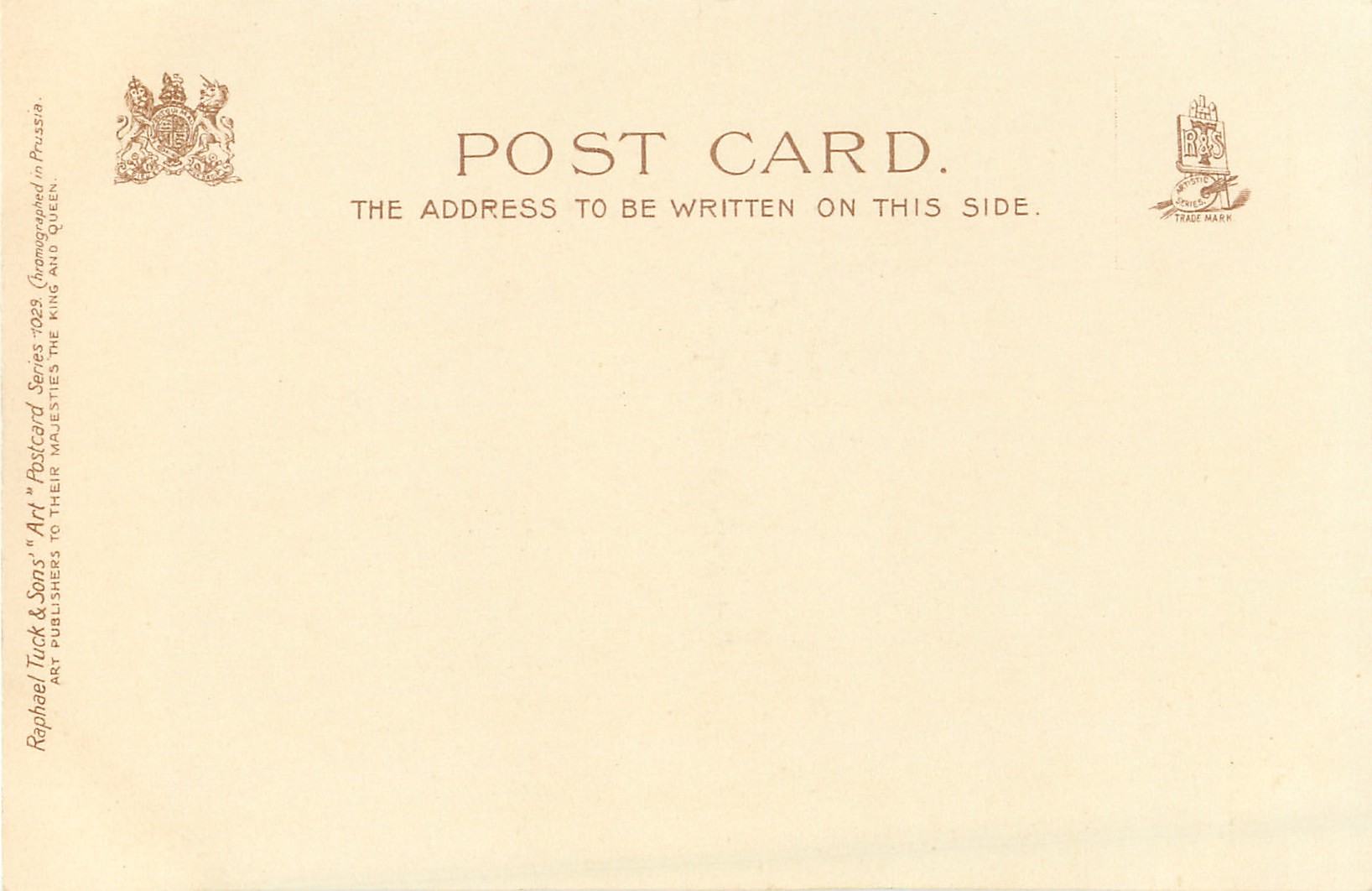 u/b or d/b, ART, CHROMOGRAPHED IN PRUSSIA, listed in 1904 POSTCARD Catalogue, same image, French back SERIE 297