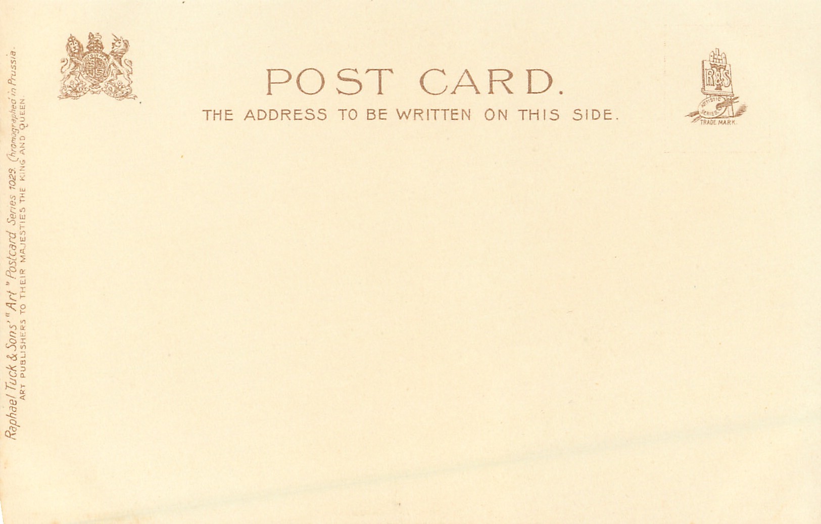 u/b or d/b, ART, CHROMOGRAPHED IN PRUSSIA, listed in 1904 POSTCARD Catalogue, same image, French back SERIE 297