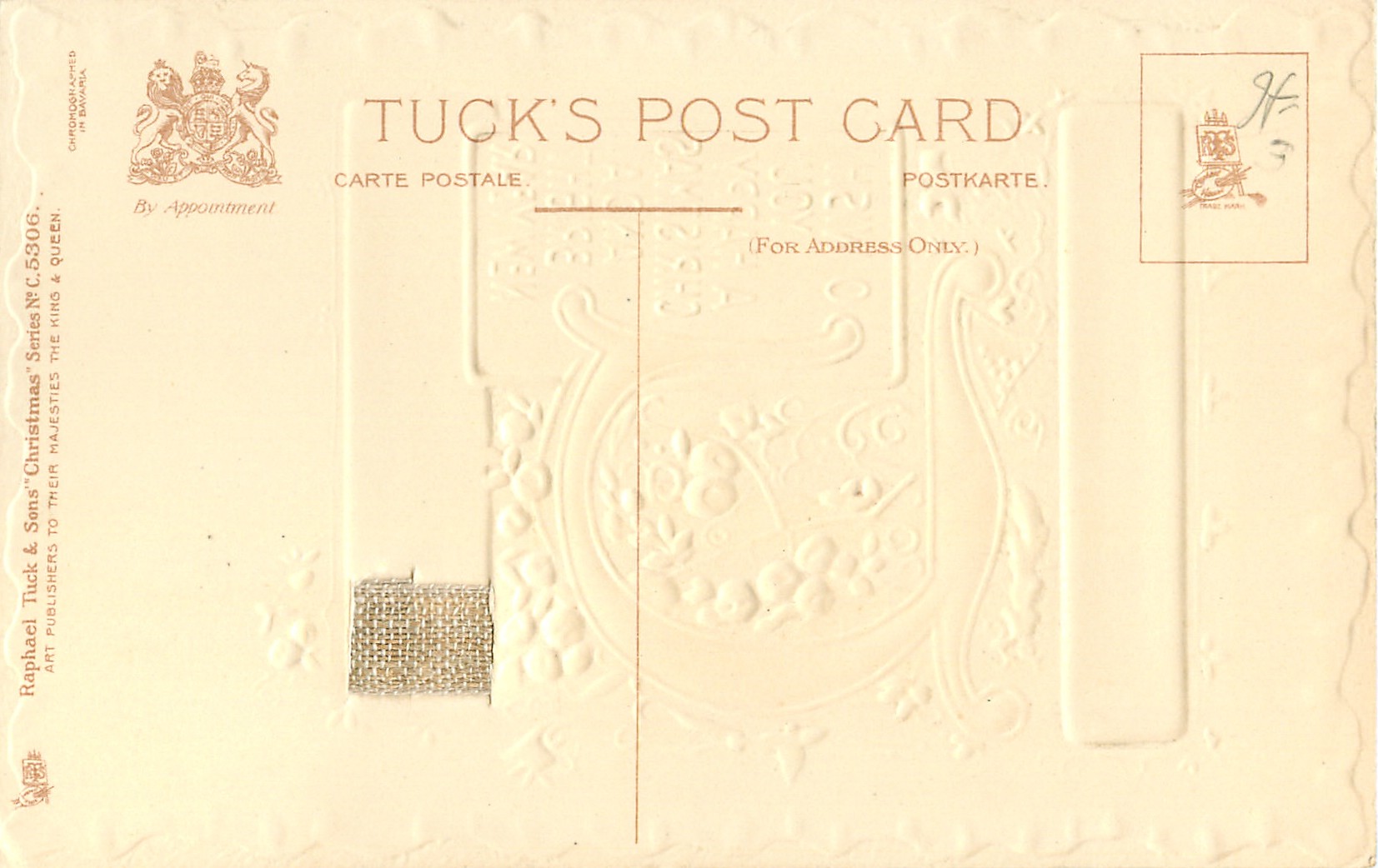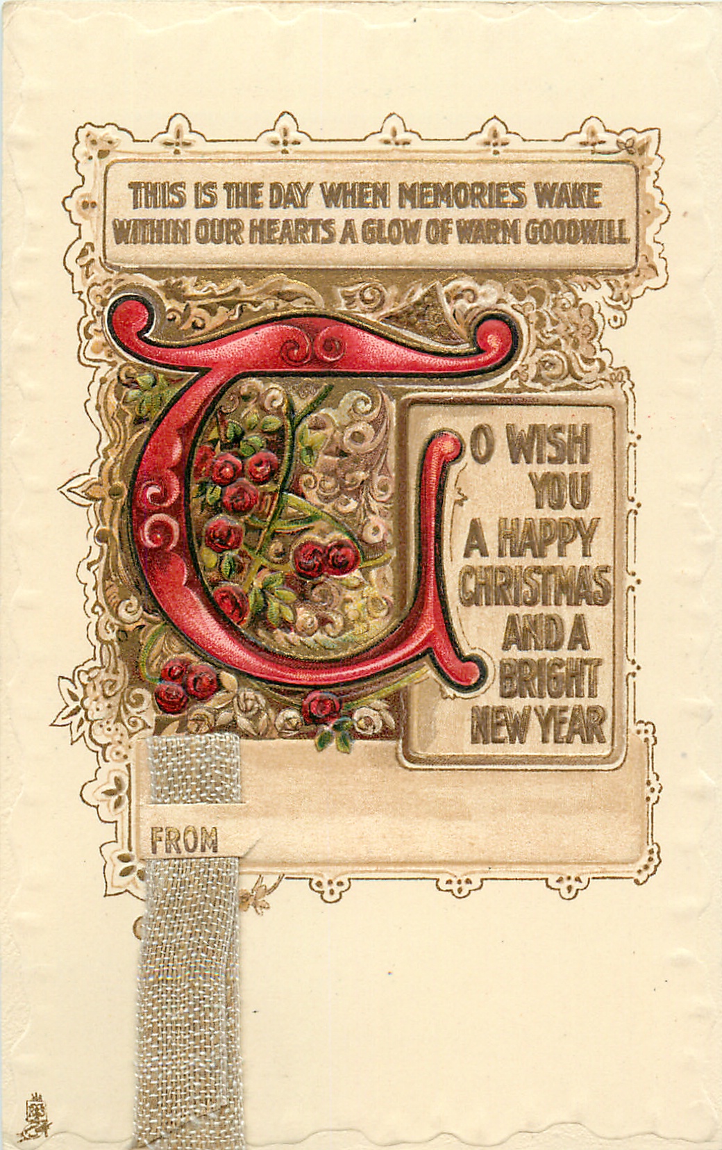 gilt embossed, CHROMOGRAPHED IN BAVARIA, ribbon applique, listed in1911/1912 Postcard Catalogue