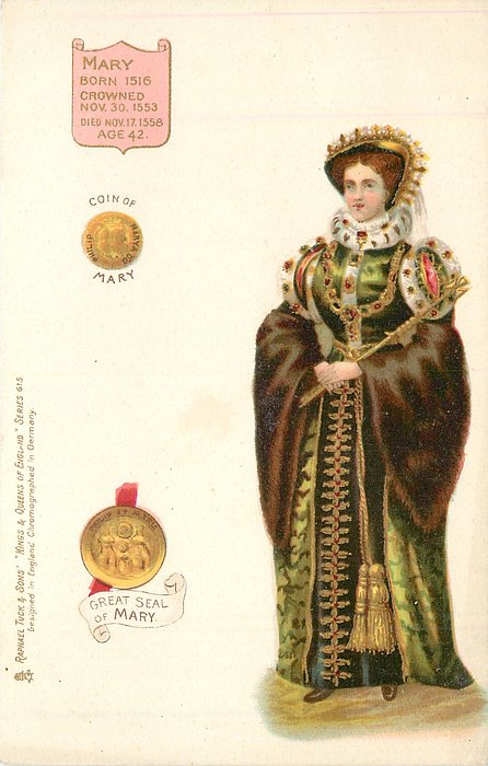 MARY BORN 1516 CROWNED NOV. 30 1553 DIED NOV. 17 1558 AGE 42