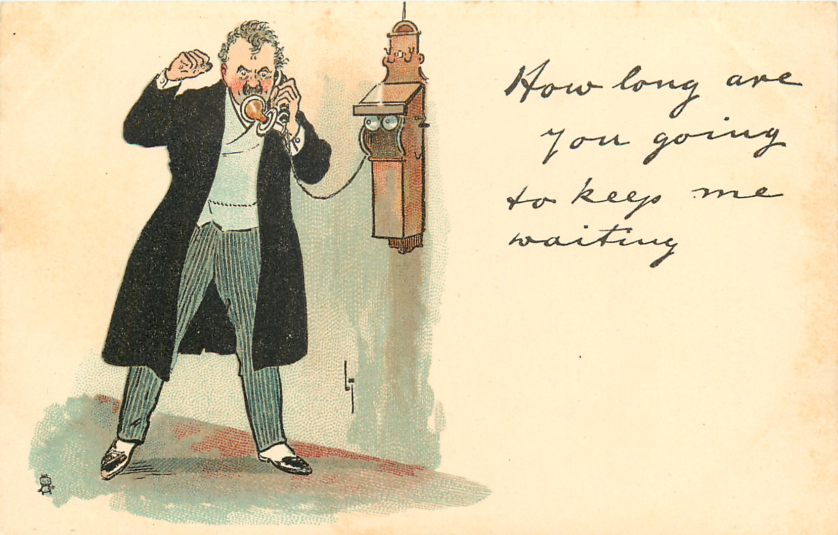HOW LONG ARE YOU GOING TO KEEP ME WAITING irate man on telephone