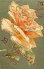 peach/orange rose, at top centre of card,facing right, two stalks
