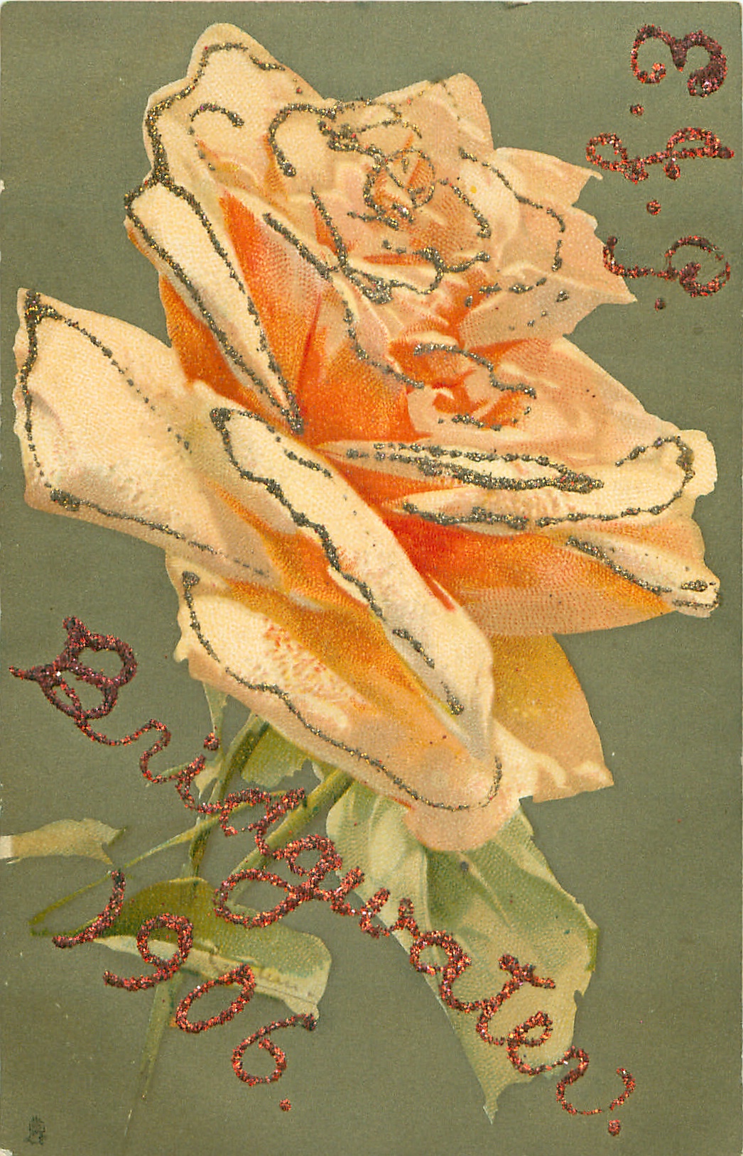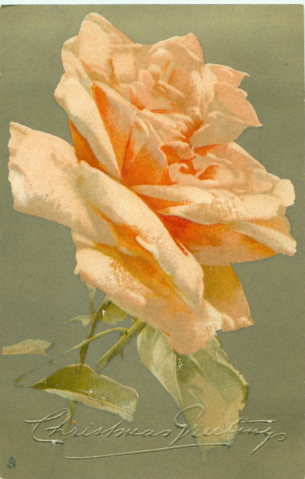 comes embossed CHRISTMAS GREETINGS or printed in green (beaded), glittered BRIDGEWATER 1906
