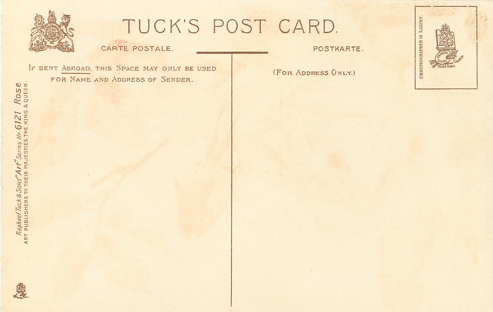 ART, 3 backs, CHROMOGRAPHED IN SAXONY (in or out of stamp box), listed in 1911/1912 Postcard Catalogue, same images German backs 384B