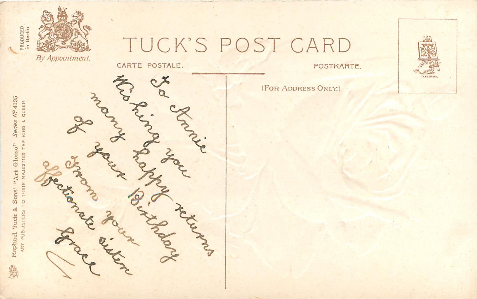ART GLOSSO, PROCESSED IN BERLIN, listed in 1911/1912 Postcard Catalogue