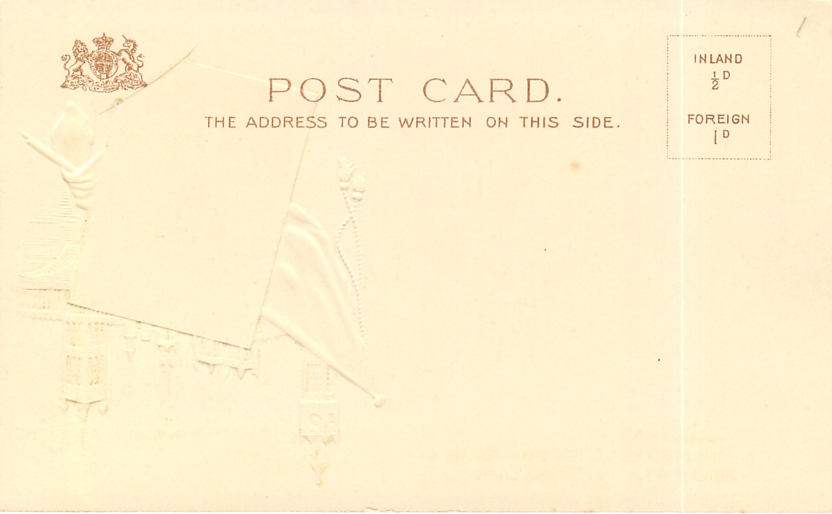 u/b, embossed, DESIGNED IN ENGLAND, CHROMOGRAPHED IN BAVARIA, listed in 1904 POSTCARD Catalogue