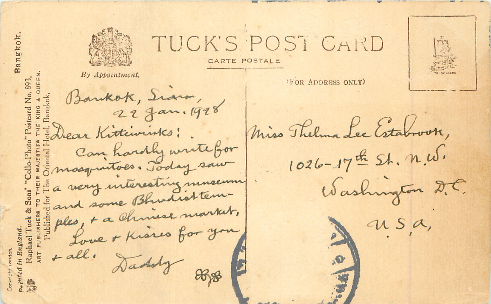 COLLO-PHOTO, PRINTED IN ENGLAND, COPYRIGHT LONDON, PUBLISHED FOR THE ORIENTAL HOTEL, BANGKOK or PUBLISHED FOR E.M. PEREIRA, BANGKOK or PUBLISHED FOR WHITEAWAY LAIDLAW & CO., BANGKOK, shades of grey/black, many of the same images PHOTOGRAPHIC GLOSSO