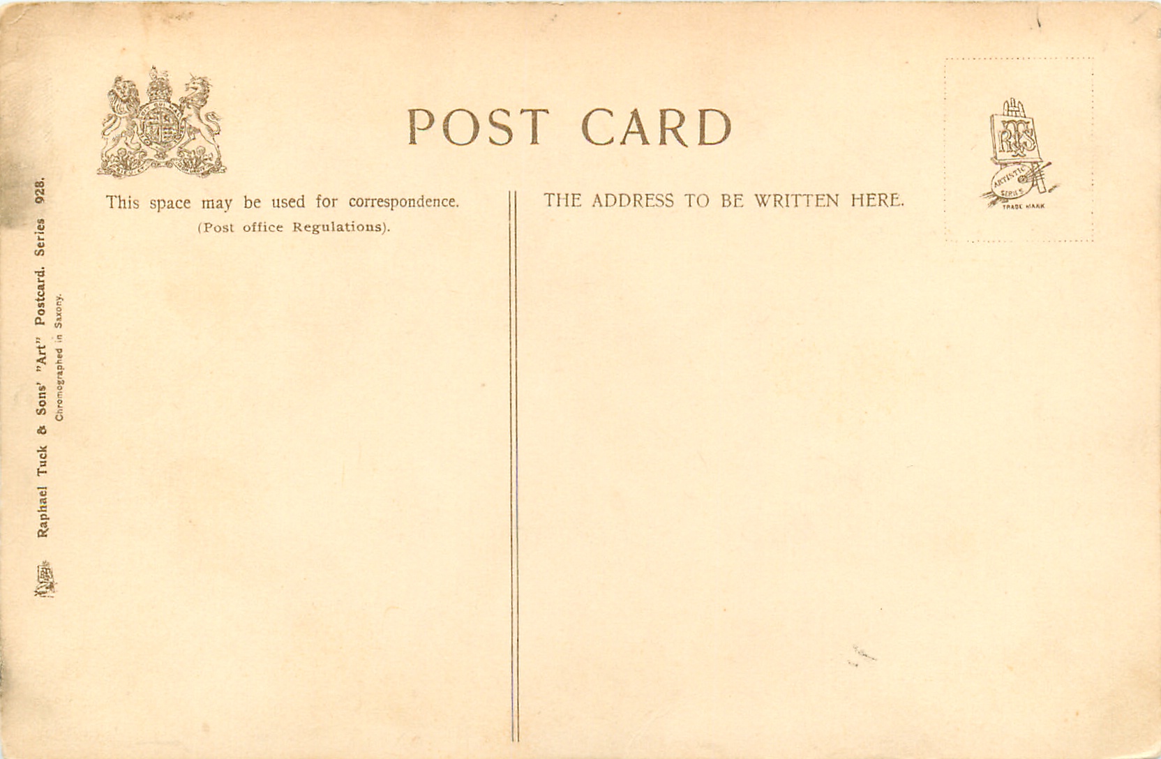 ART, 2 backs, CHROMOGRAPHED IN SAXONY, listed in 1904 & 1908/1909 & 1911/1912 Postcard Catalogues