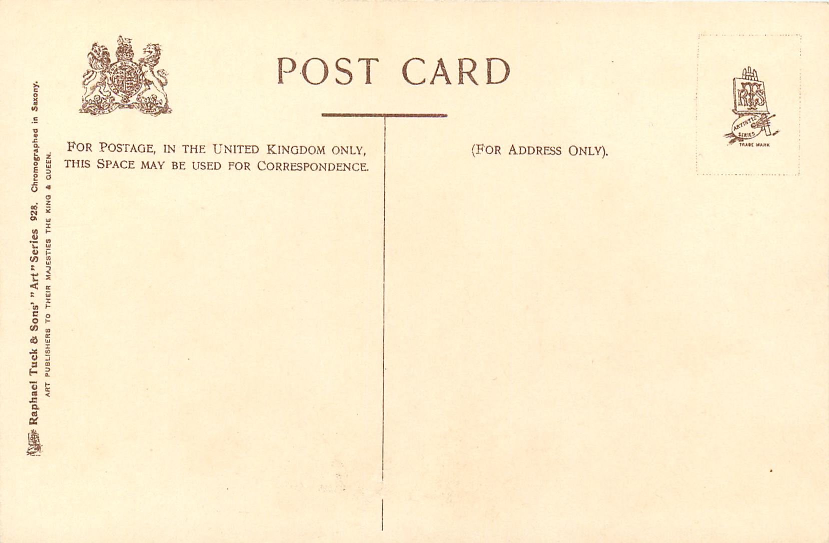 ART, 2 backs, CHROMOGRAPHED IN SAXONY, listed in 1904 & 1908/1909 & 1911/1912 Postcard Catalogues