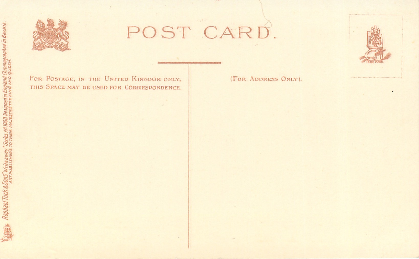 WRITE AWAY, DESIGNED IN ENGLAND, CHROMOGRAPHED IN BAVARIA, see Booth and Lund listed in 1904 POSTCARD Catalogue