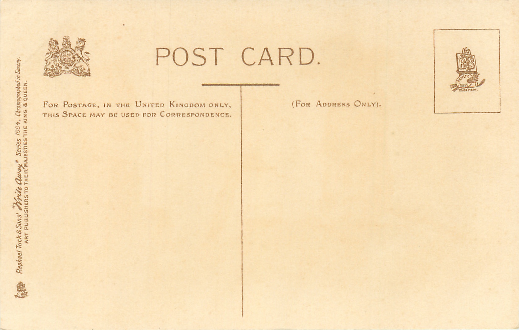 WRITE AWAY, DESIGNED IN ENGLAND, CHROMOGRAPHED IN BAVARIA, u/b or d/b, see Booth and Lund, listed in 1904 & 1908/1909 & 1911/1912 Postcard Catalogues