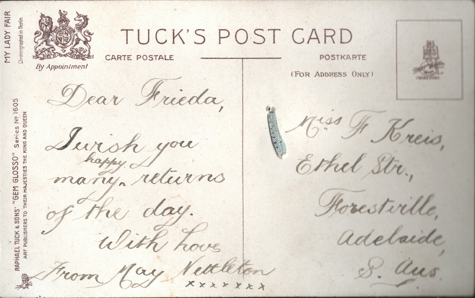 GEM GLOSSO, CHROMOGRAPHED IN BERLIN, listed in 1912 Catalogue, come with silk bow applique