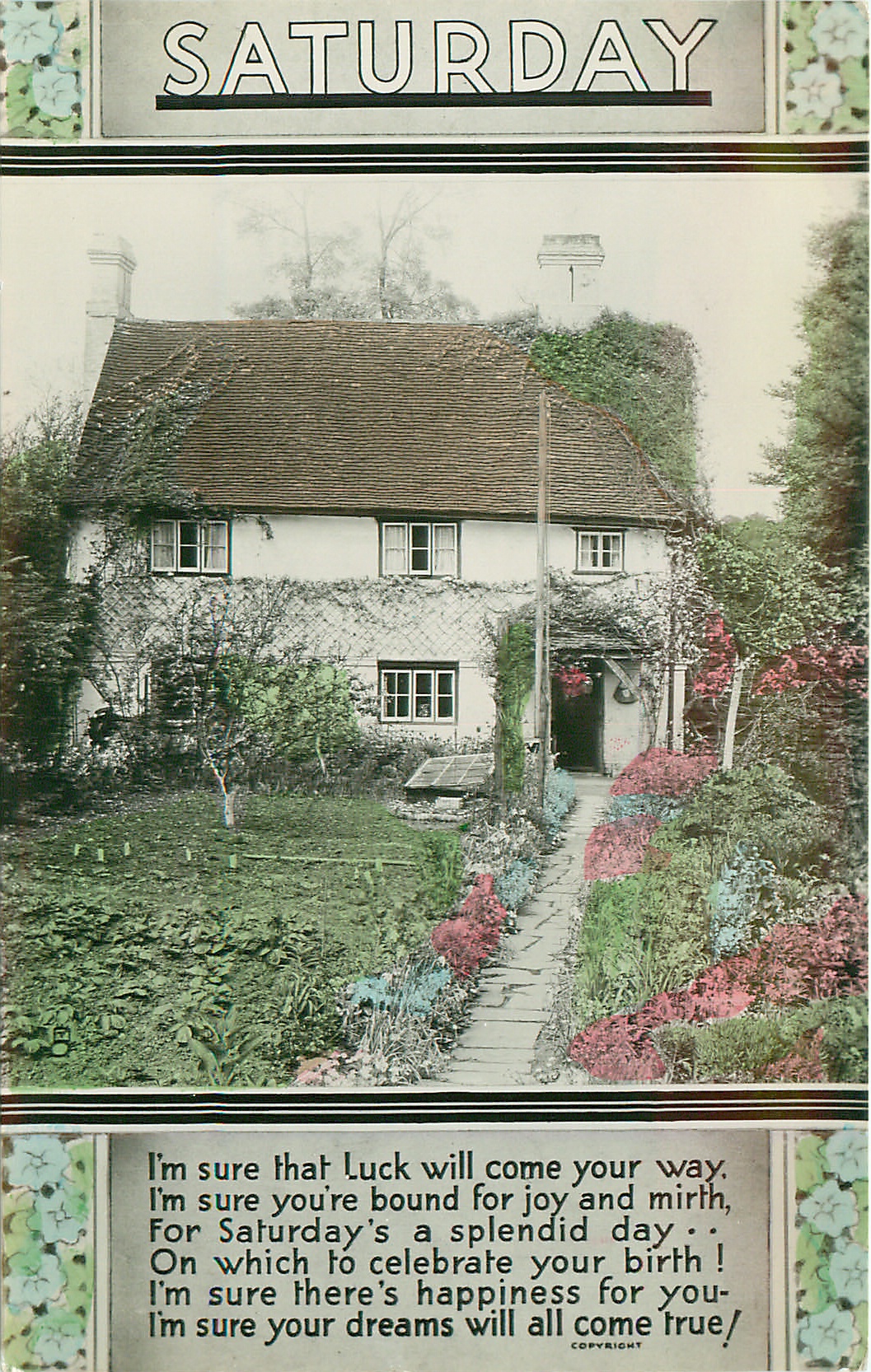 verse:- I'M SURE THAT LUCK WILL COME YOUR WAY, I'M SURE YOU'RE BOUND FOR JOY AND MIRTH, FOR SATURDAY'S A SPLENDID DAY ON WHICH TO CELEBRATE YOUR BIRTH! I'M SURE THERE'S HAPPINESS FOR YOU-I'M SURE YOUR DREAMS WILL ALL COME TRUE!