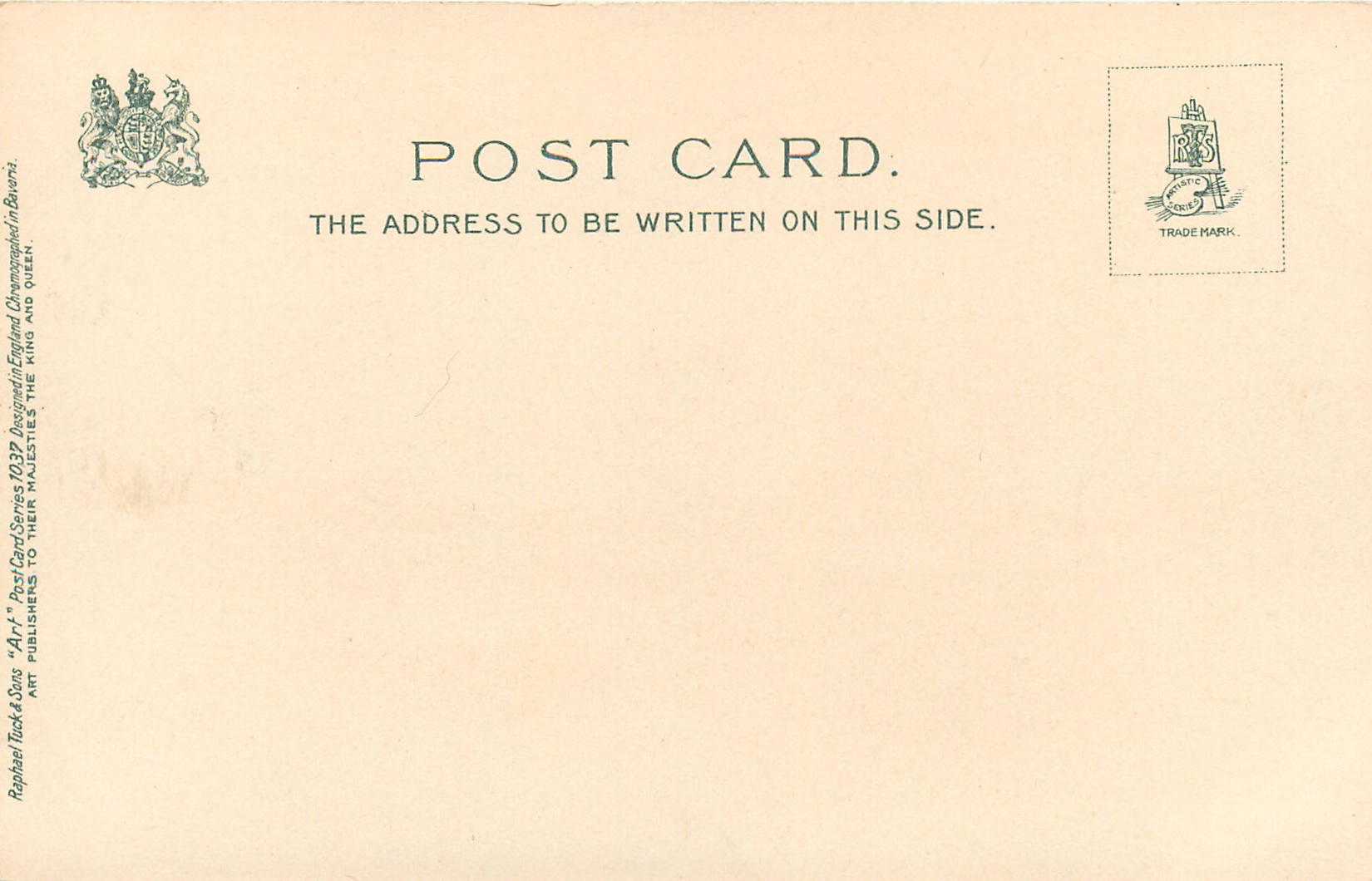 ART, u/b, DESIGNED IN ENGLAND, CHROMOGRAPHED IN BAVARIA, listed in 1904 POSTCARD Catalogue