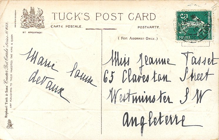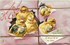 A HAPPY EASTER TO YOU five chicks poke their heads through wrappings of a purple parcel tied with string