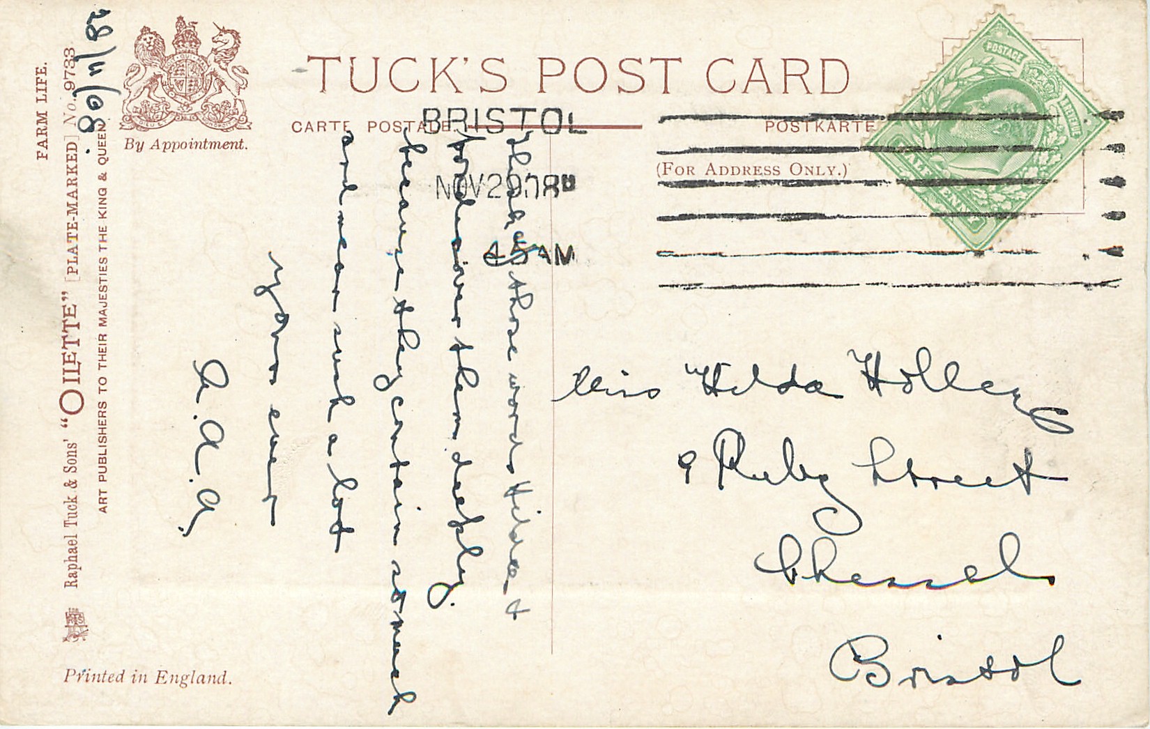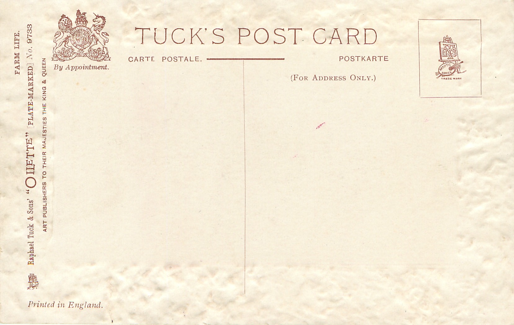 OILETTE, PLATE-MARKED, PRINTED IN ENGLAND, listed in 1908/1909 & 1911/1912 Postcard Catalogue