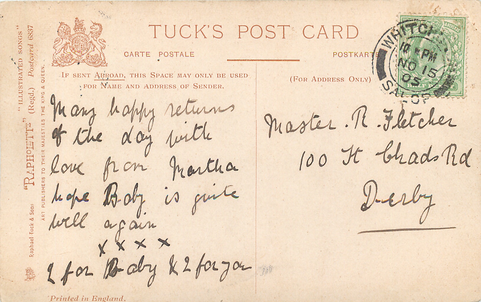 RAPHOLETTE, PRINTED IN ENGLAND, comes shades of grey/black, grey-green or sepia