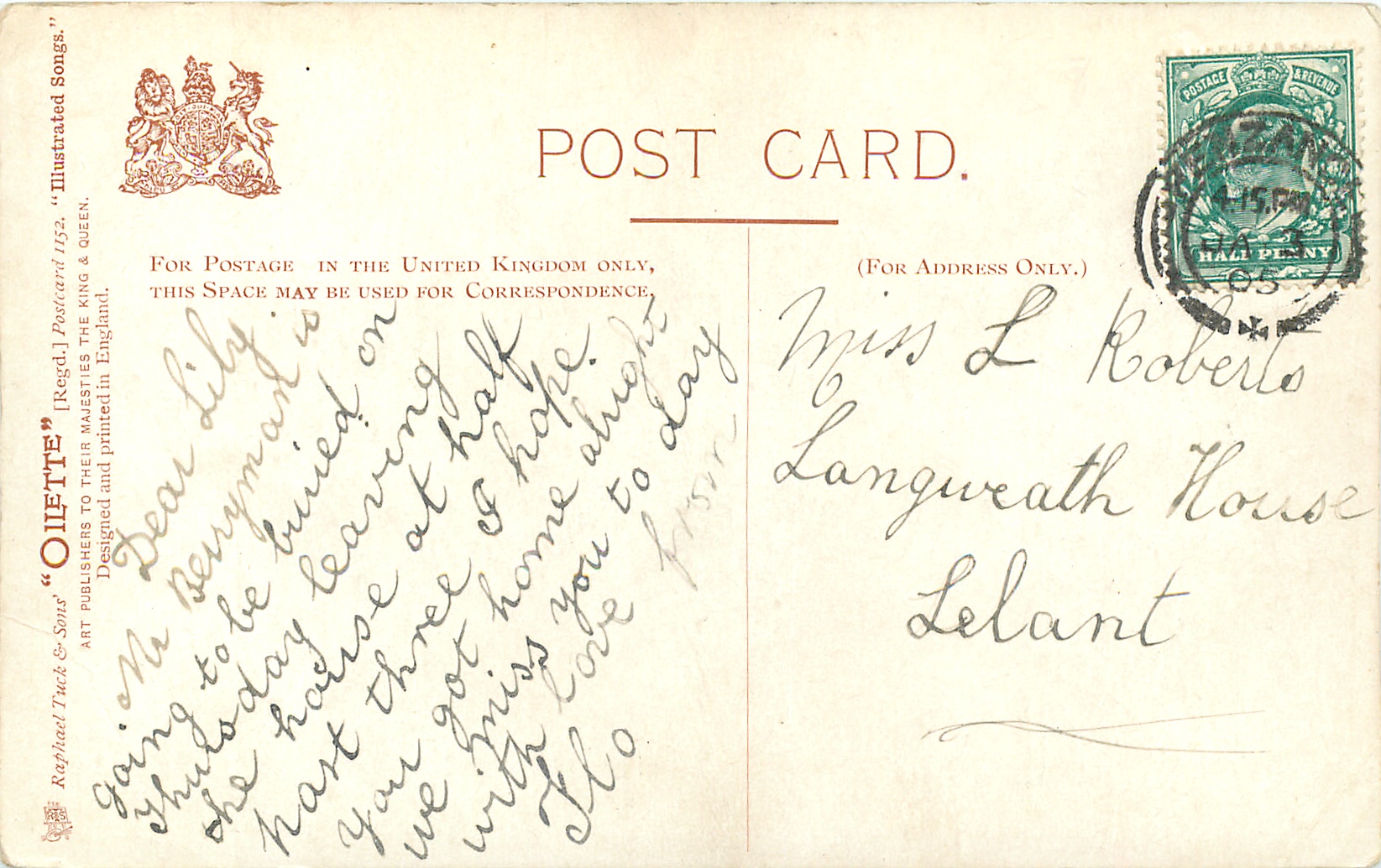 ART or OILETTE, u/b or d/b, 5 backs, listed in 1904 POSTCARD Catalogue, same images with Christmas greetings in 1631 &1656, listed in postcard catalogue 1908(USA)