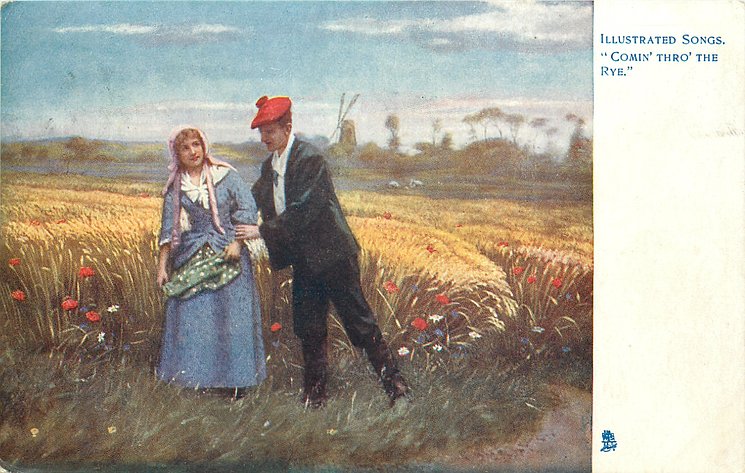 "COMIN' THRO' THE RYE." woman in blue left, man with red tam right, holds her left arm