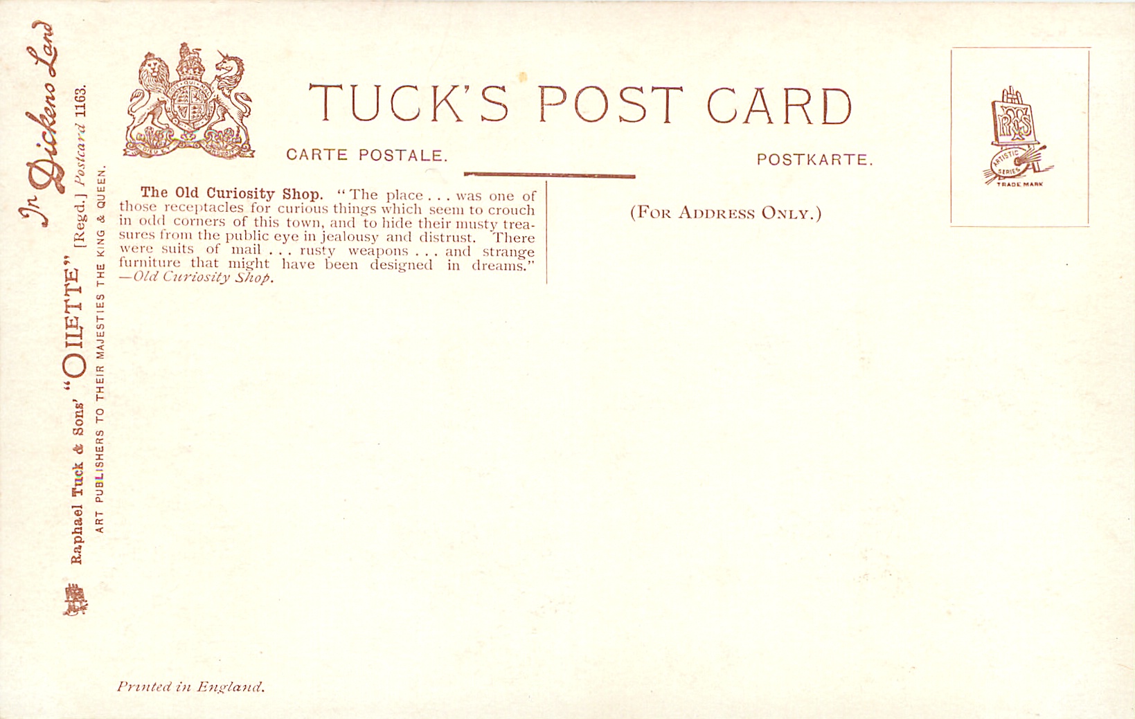 IN DICKENS LAND back title (series I, not on cards), familiar scenes