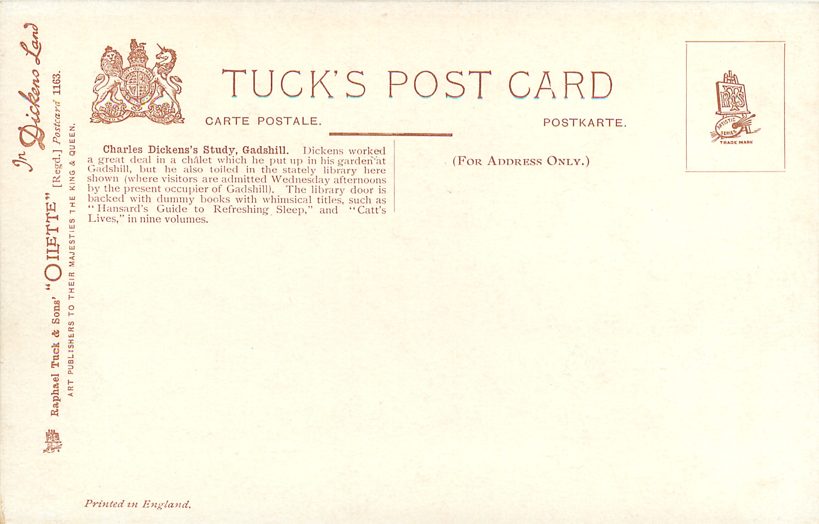 CHAS. DICKENS' STUDY, GADSHILL also comes CHARLES DICKENS' STUDY, GADSHILL