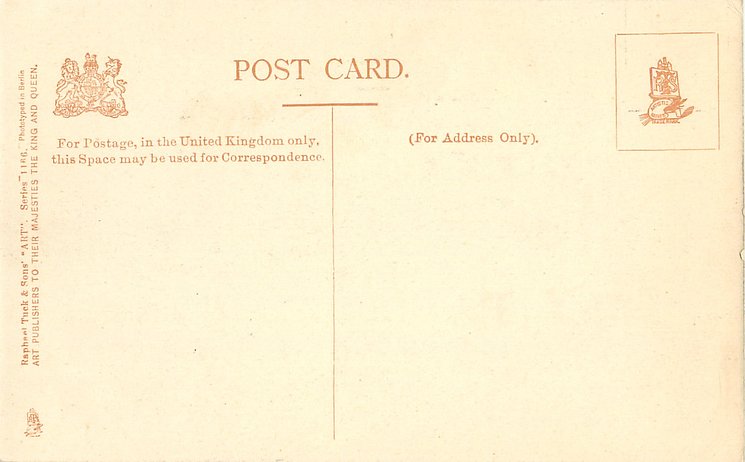 sepia or blue/grey, ART, 2 backs, PHOTOTYPED IN BERLIN, listed in 1904 POSTCARD Catalogue