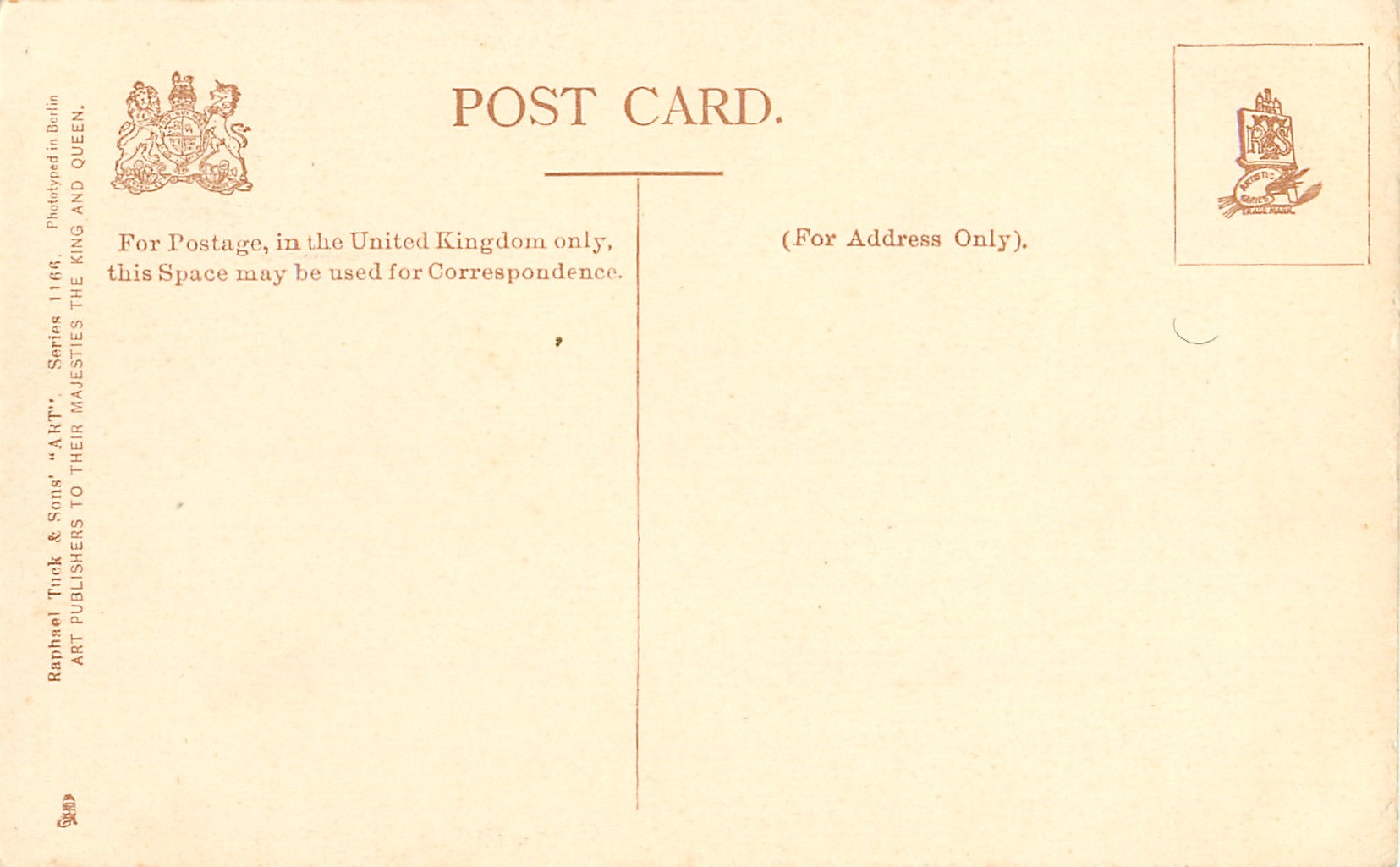 sepia or blue/grey, ART, 2 backs, PHOTOTYPED IN BERLIN, listed in 1904 POSTCARD Catalogue