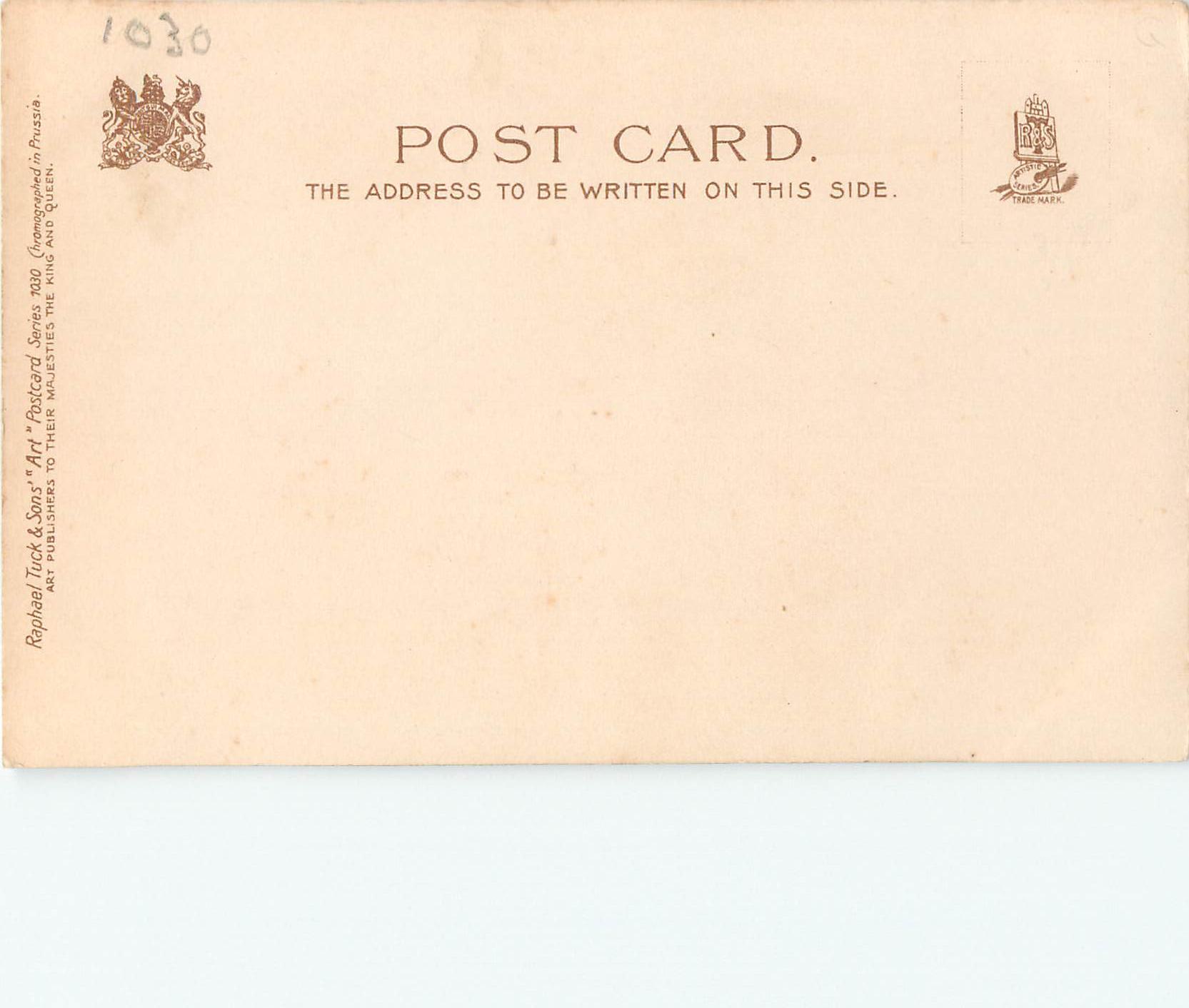 ART, u/b, CHROMOGRAPHED IN PRUSSIA, listed in 1904 POSTCARD Catalogue