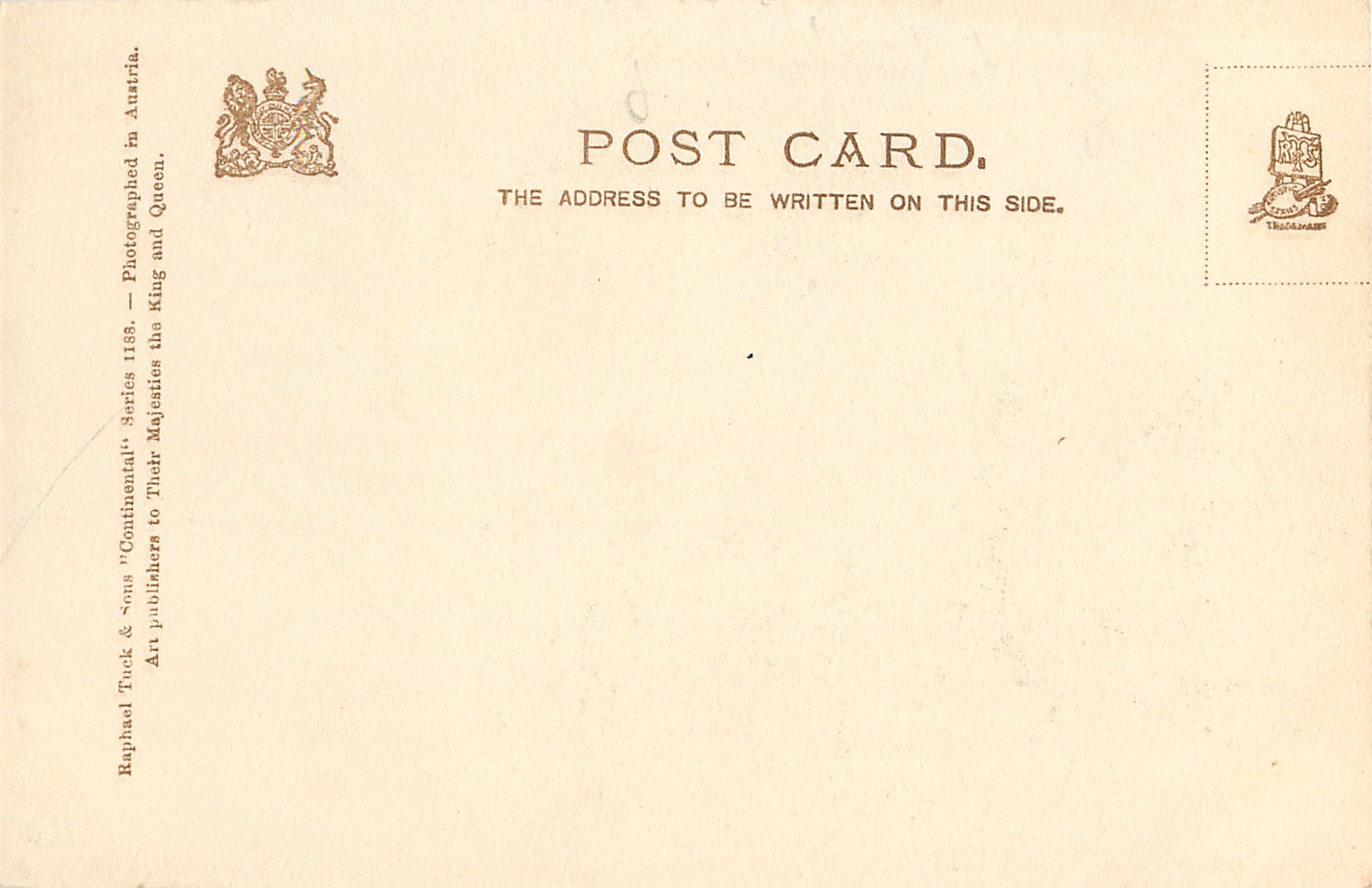 CONTINENTAL, u/b, grey/black, come hand-coloured, PHOTOGRAPHED IN AUSTRIA, listed in 1904 POSTCARD Catalogue
