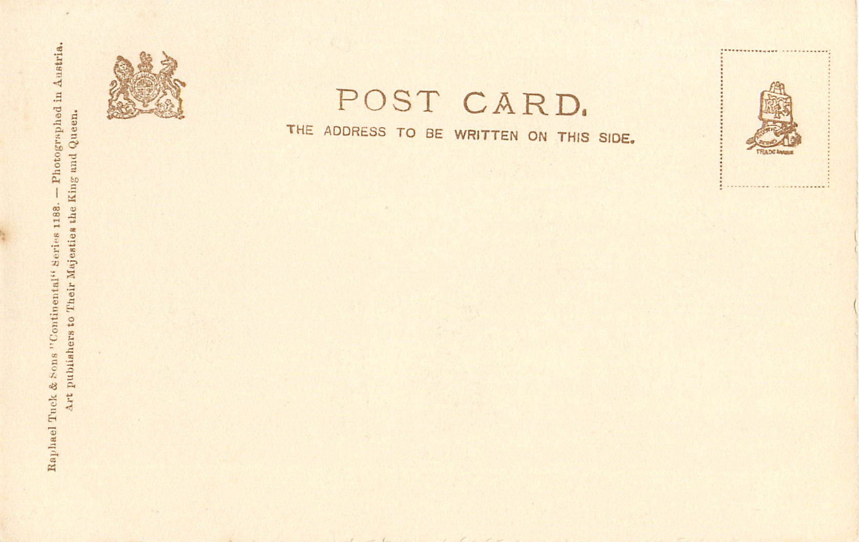 CONTINENTAL, u/b, grey/black, come hand-coloured, PHOTOGRAPHED IN AUSTRIA, listed in 1904 POSTCARD Catalogue