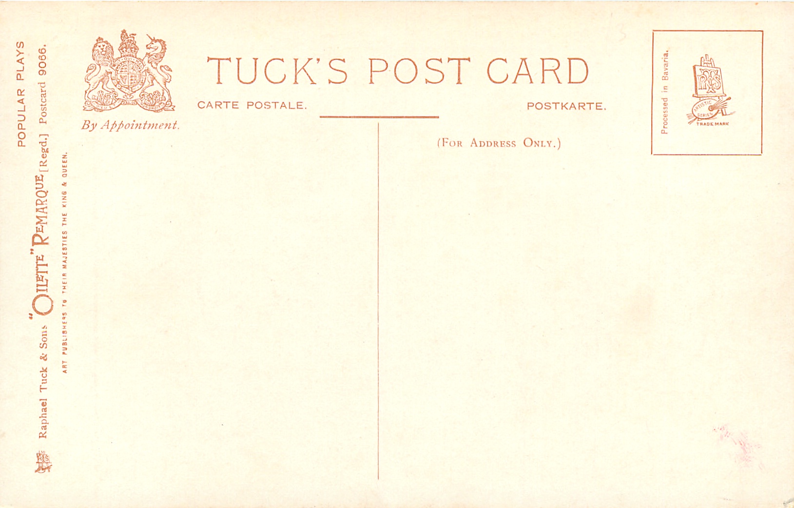 OILETTE REMARQUE, PROCESSED IN BAVARIA (in stamp box) or OILETTE, PRINTED IN BAVARIA (in stamp box), 2 backs, listed in 1908/1909 & 1911/1912 Postcard Catalogue