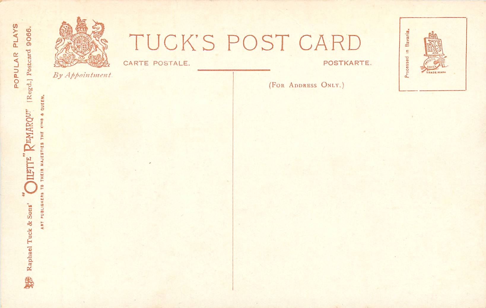 OILETTE REMARQUE, PROCESSED IN BAVARIA (in stamp box) or OILETTE, PRINTED IN BAVARIA (in stamp box), 2 backs, listed in 1908/1909 & 1911/1912 Postcard Catalogue