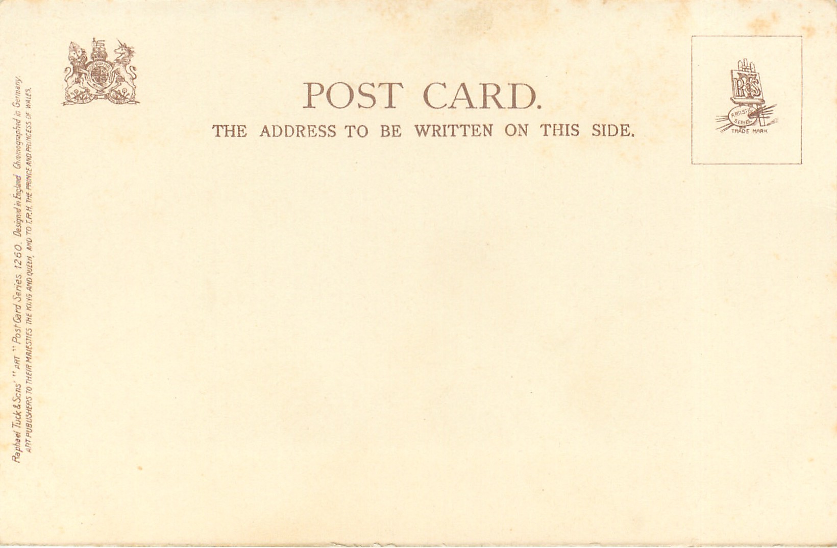 ART, DESIGNED IN ENGLAND, CHROMOGRAPHED IN GERMANY, same images 1749, see Booth and Lund, listed in 1904 POSTCARD Catalogue