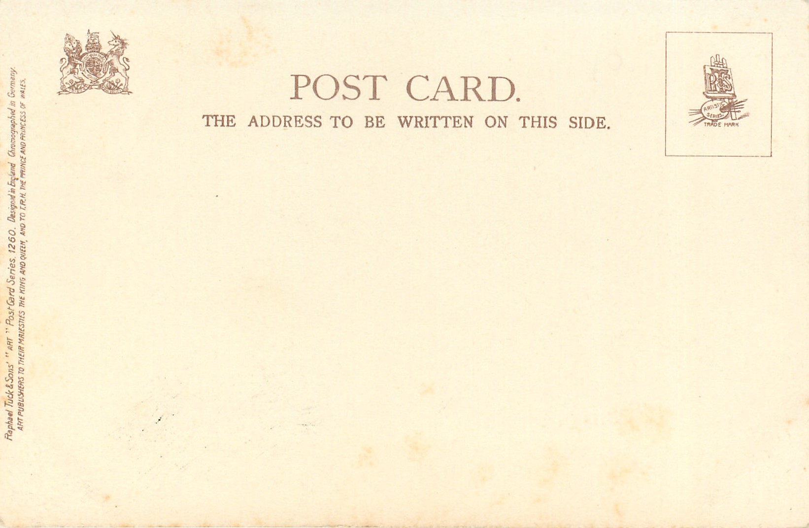 ART, DESIGNED IN ENGLAND, CHROMOGRAPHED IN GERMANY, same images 1749, see Booth and Lund, listed in 1904 POSTCARD Catalogue