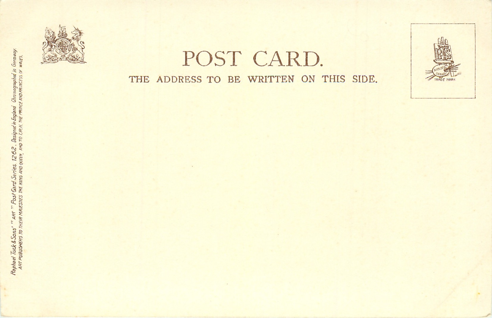 ART, DESIGNED IN ENGLAND, CHROMOGRAPHED IN GERMANY, same images French edition SERIE 331, same images 1782, see Booth and Lund, listed in 1904 POSTCARD Catalogue