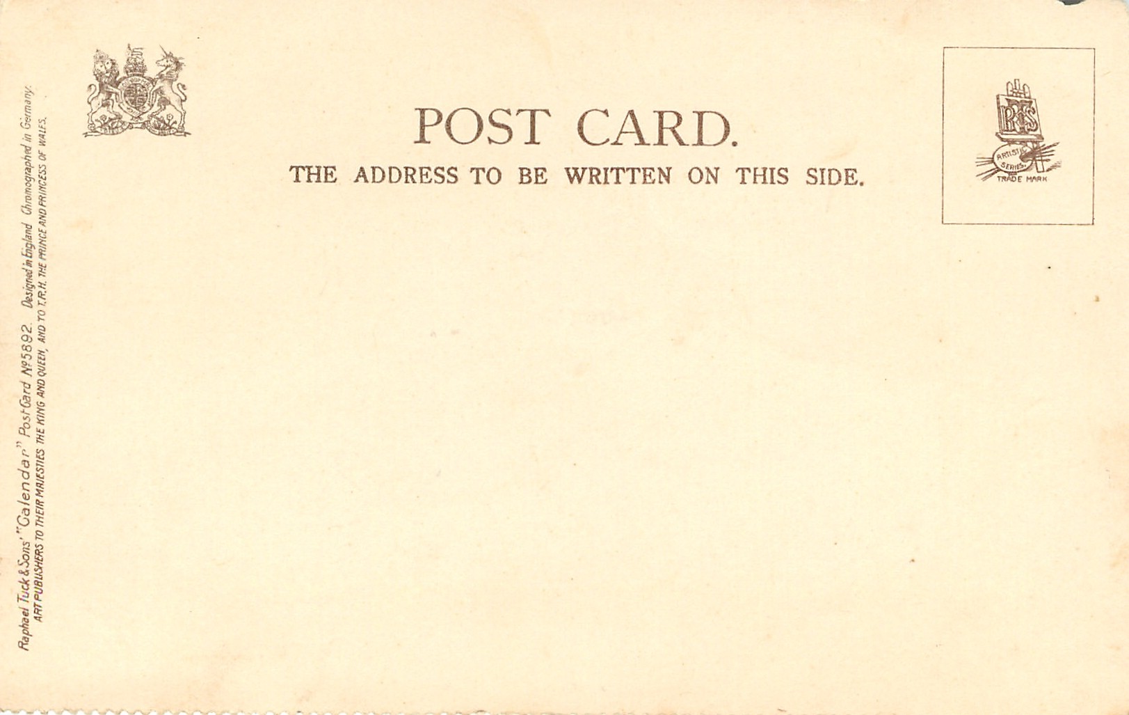 CALENDAR, perforated cards, DESIGNED IN ENGLAND, CHROMOGRAPHED IN GERMANY, see Booth and Lund, come as inserts into calendar panels for CAT LIFE POST CARD CALENDAR FOR 1904, see Tuck DB ephemera