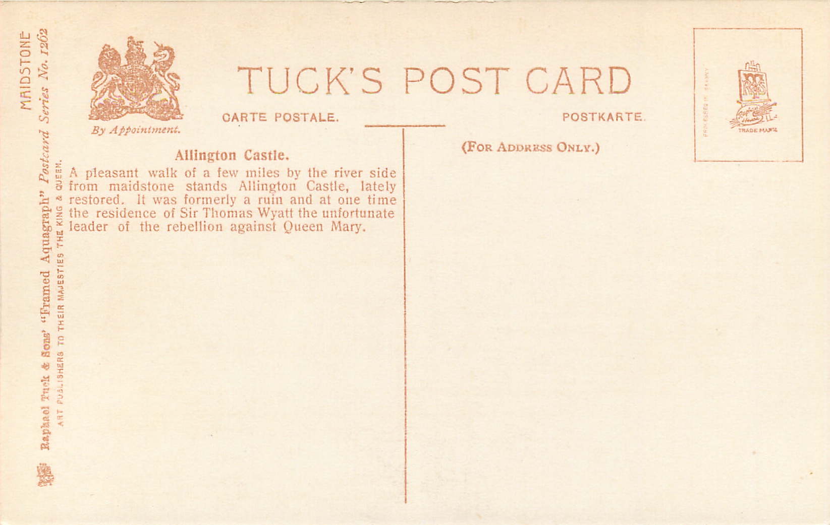 FRAMED AQUAGRAPH, PROCESSED IN SAXONY (in stamp box), listed in 1930 POSTCARD Catalogue
