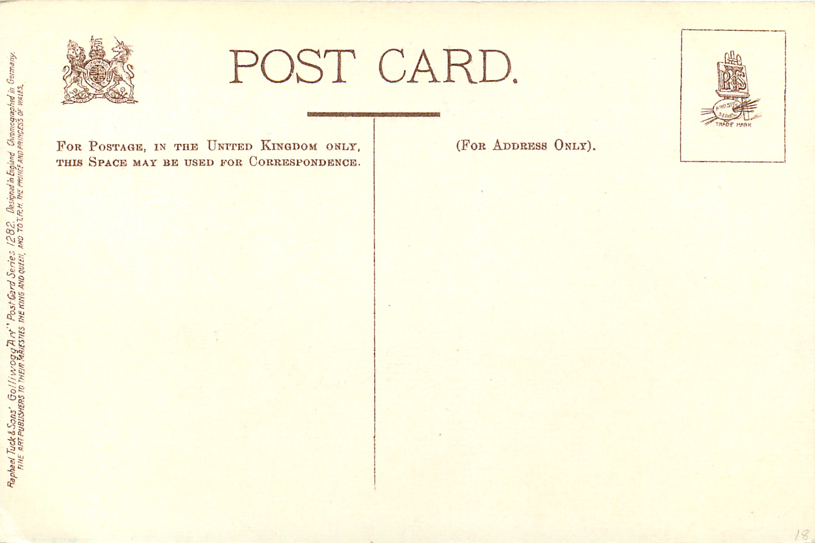 ART, DESIGNED IN ENGLAND, CHROMOGRAPHED IN GERMANY, BY PERMISSION OF MESSRS. LONGMANS, GREEN & CO, blue edges to cards, listed in 1904 & 1908/1909 & 1911/1912 Postcard Catalogues
