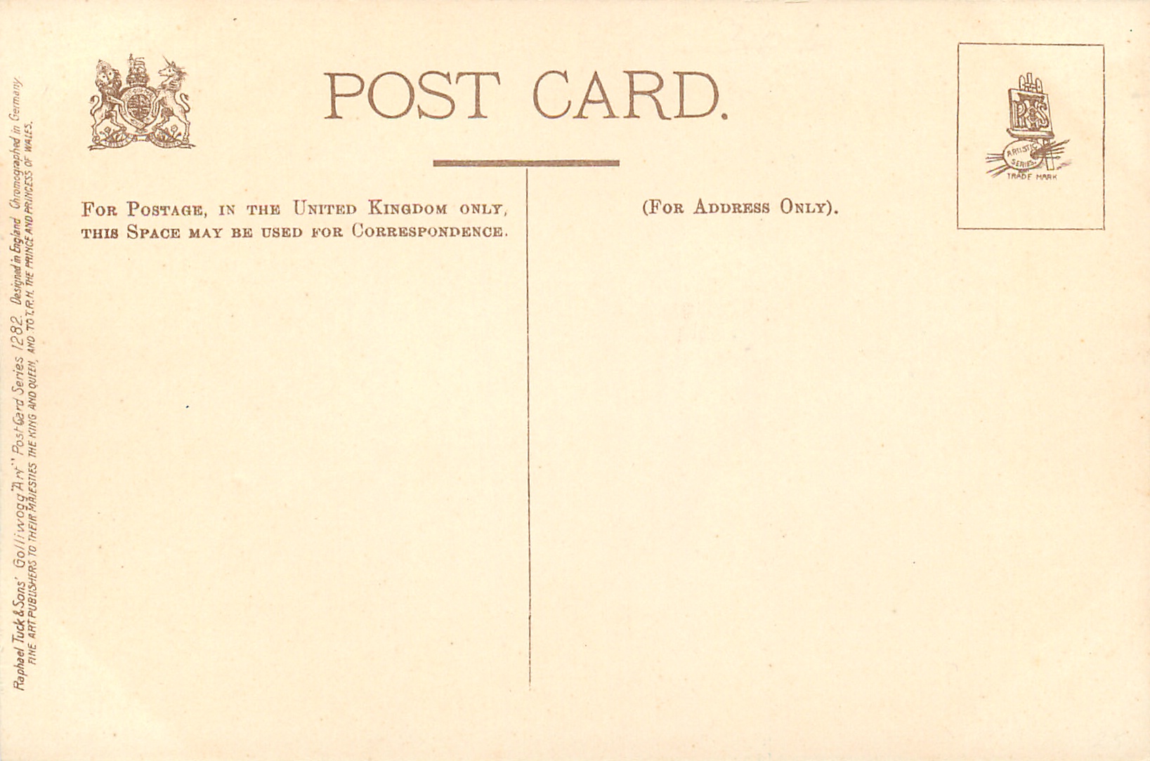ART, DESIGNED IN ENGLAND, CHROMOGRAPHED IN GERMANY, BY PERMISSION OF MESSRS. LONGMANS, GREEN & CO, blue edges to cards, listed in 1904 & 1908/1909 & 1911/1912 Postcard Catalogues