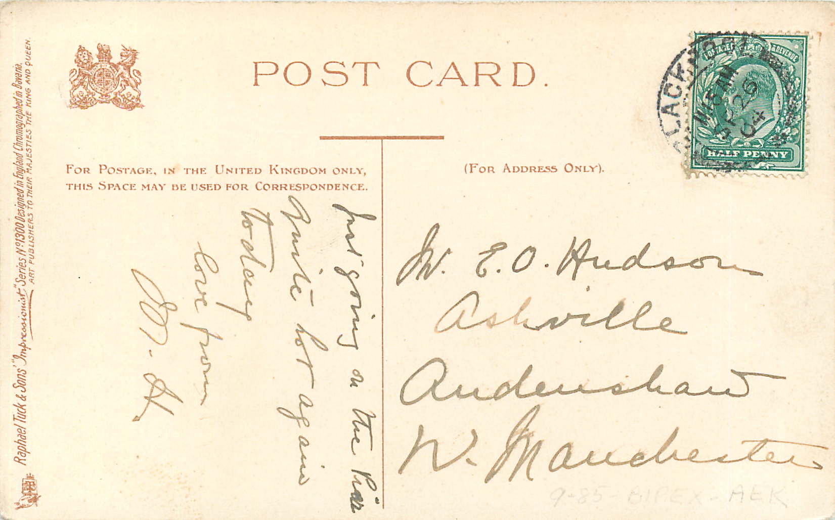 IMPRESSIONIST, DESIGNED IN ENGLAND, CHROMOGRAPHED IN BERLIN same images French backs EN SOIREE SERIE 435, listed in postcard catalogue 1908(USA)