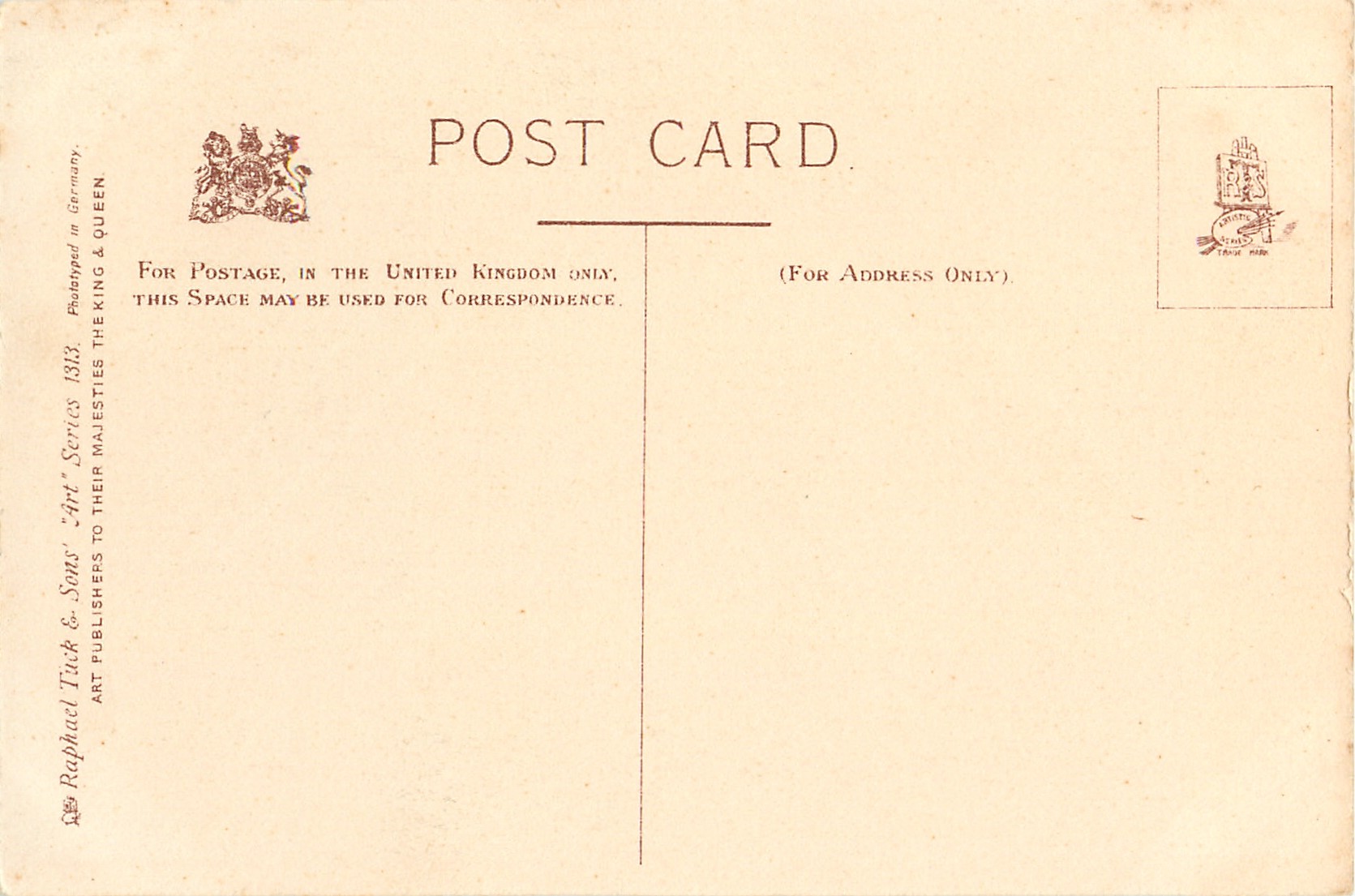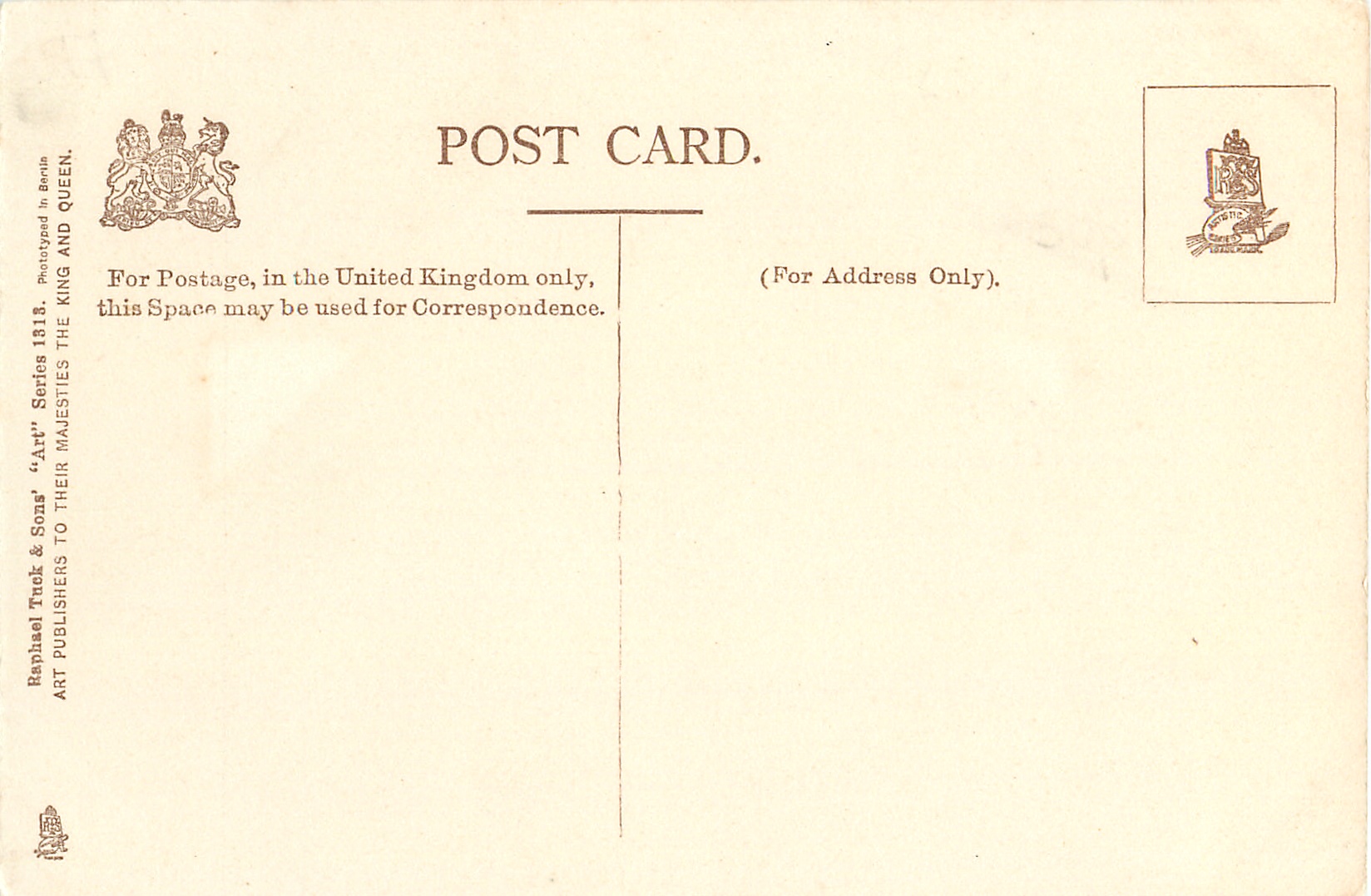 black & white ART, 3 backs, come without card title, PHOTOTYPED IN GERMANY or BERLIN, listed in 1904 POSTCARD Catalogue