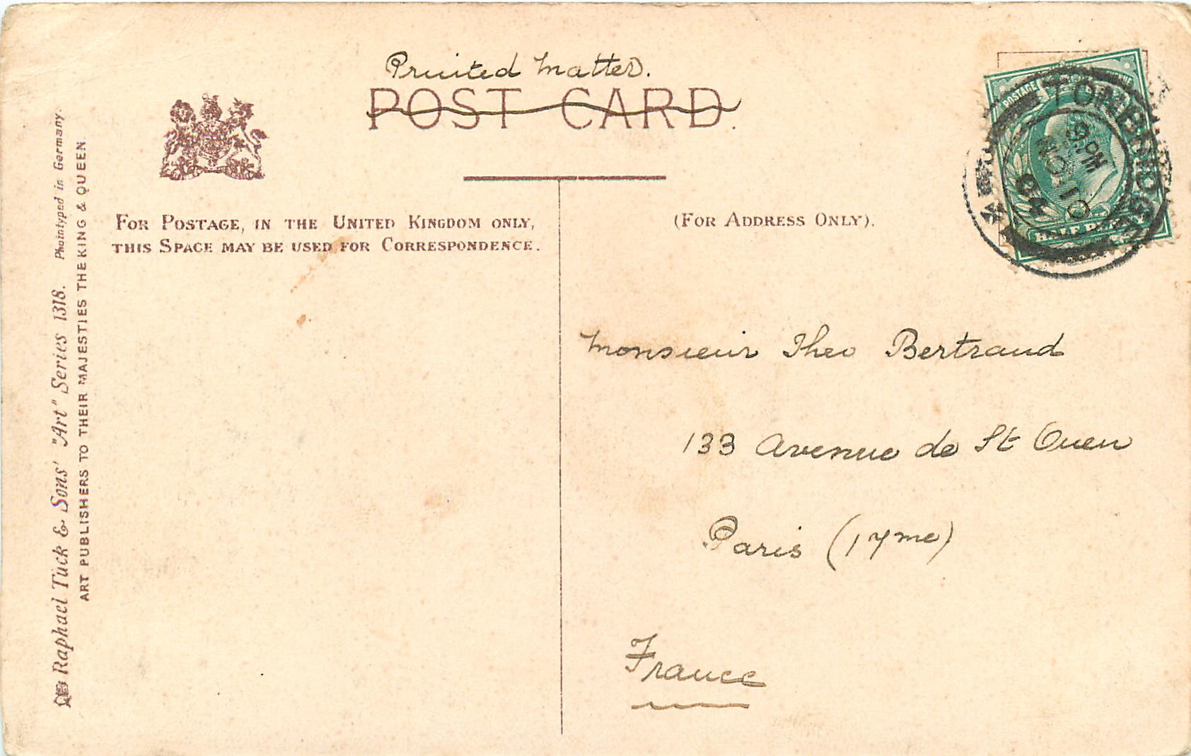 gray/black, ART, PHOTOTYPED IN GERMANY, listed in 1904 POSTCARD Catalogue