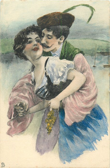 Country courting couples, ART, stolen kisses