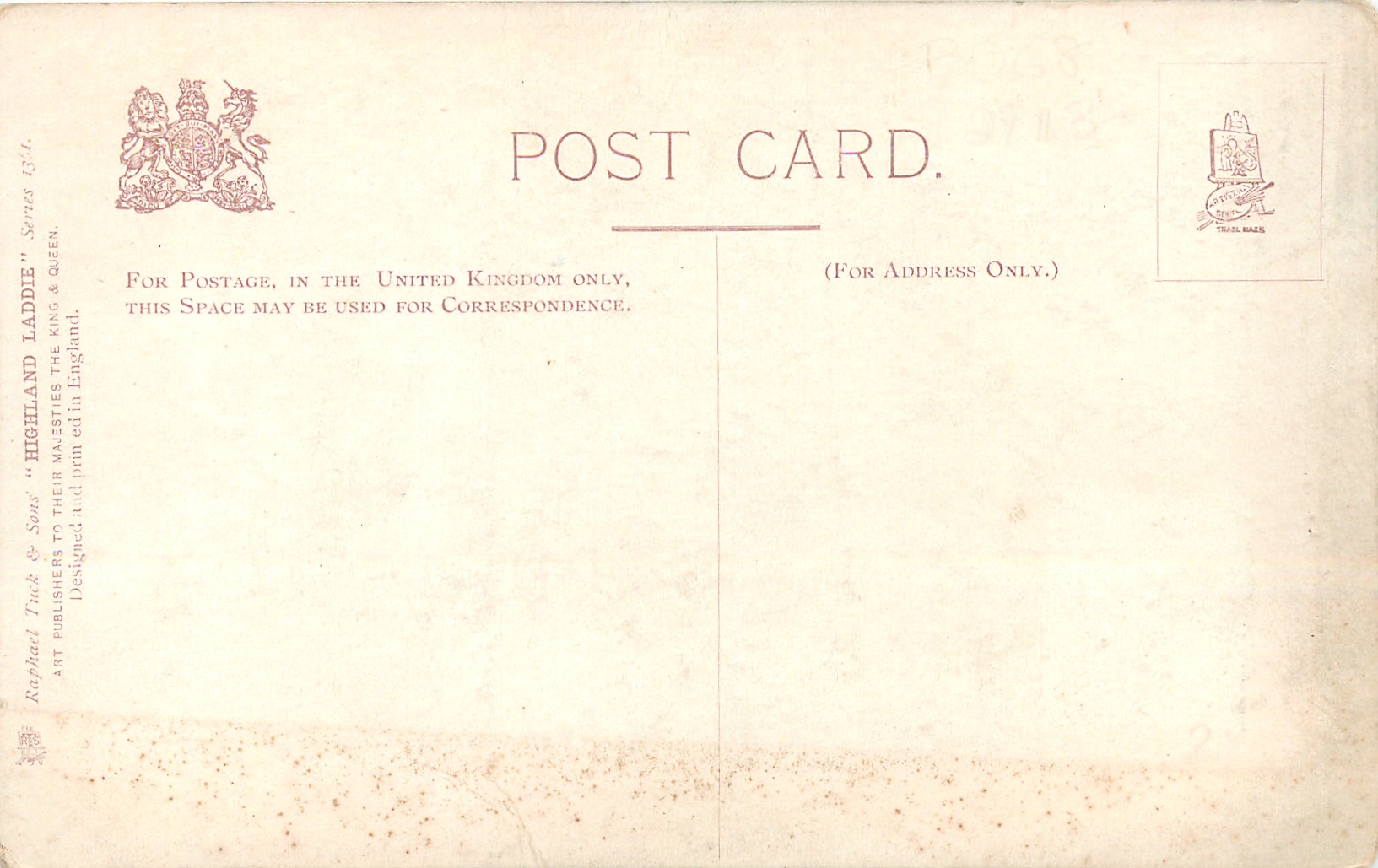 OILETTE or no trade name, 3 backs, DESIGNED AND PRINTED IN ENGLAND or PRINTED IN ENGLAND or not, listed in 1904 & 1908/1909 & 1911/1912 & 1913/1914 Postcard Catalogues