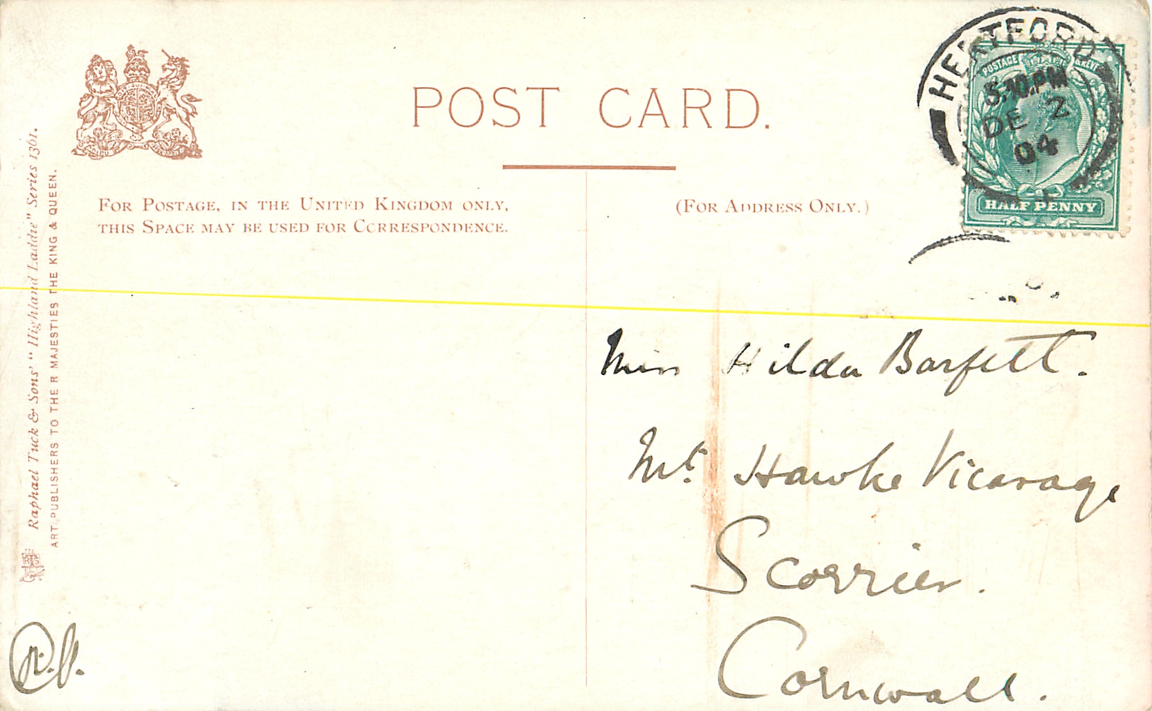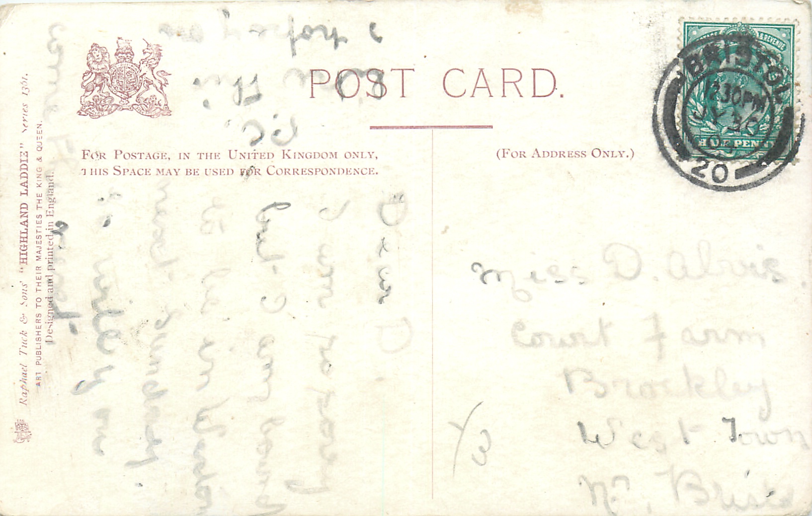 OILETTE or no trade name, 3 backs, DESIGNED AND PRINTED IN ENGLAND or PRINTED IN ENGLAND or not, listed in 1904 & 1908/1909 & 1911/1912 & 1913/1914 Postcard Catalogues