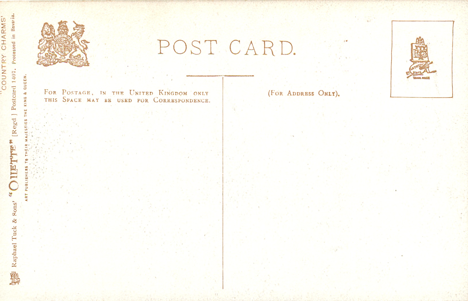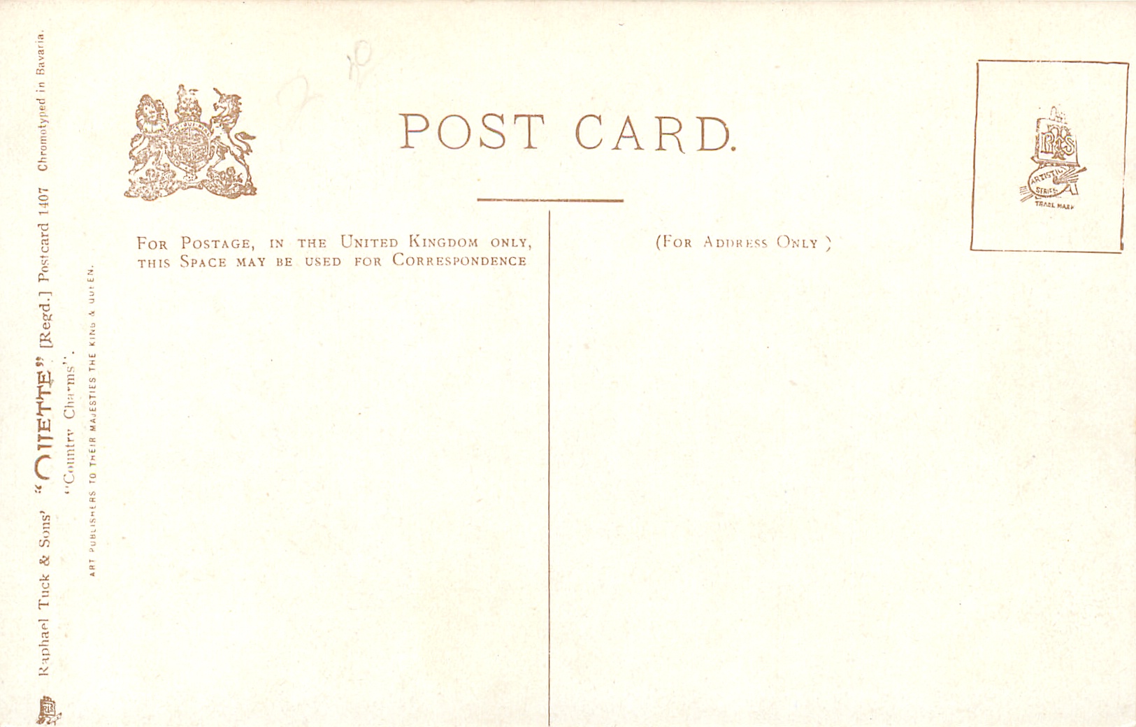 OILETTE, 2 backs, CHROMOTYPED or PROCESSED IN BAVARIA, come beaded, listed in 1904 & 1908/1909 & 1911/1912 & 1913/1914 & 1930 Postcard Catalogues, listed in TUCK'S TRAVELOGUES (USA?1905)