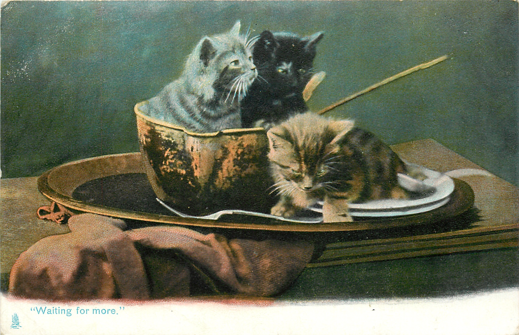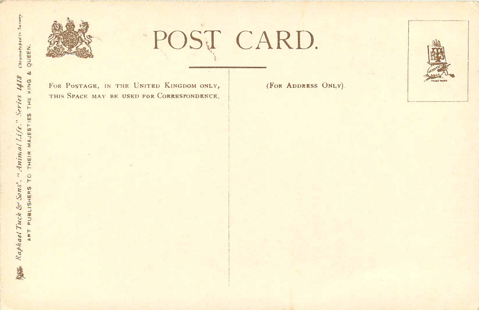 PHOTOCHROME cards entitled KITTENDOM, PHOTOCHROMED IN SAXONY or CHROMO-SAXONY (in stamp box); ANIMAL LIFE cards CHROMOTYPED IN SAXONY, listed in 1904 & 1908/1909 & 1911/1912 & 1913/1914 Postcard Catalogues